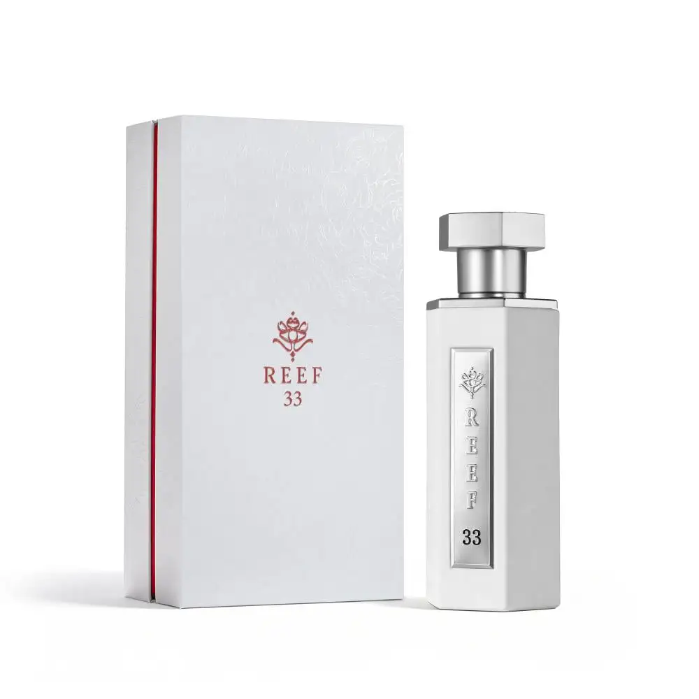 Discover Reef 33 White at Scentro. A captivating blend of Raspberry, Saffron, and Oud. Experience a long-lasting scent with our original perfumes Egypt.